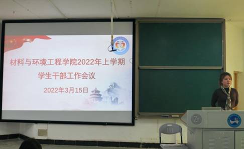 3月15日下午,材料与环境工程学院于致远楼201教室召开学生干部工作会议。学院党总支副书记陈佩君,全体辅导员、团、学主要学生干部、班长、团支书参加了此次会议。