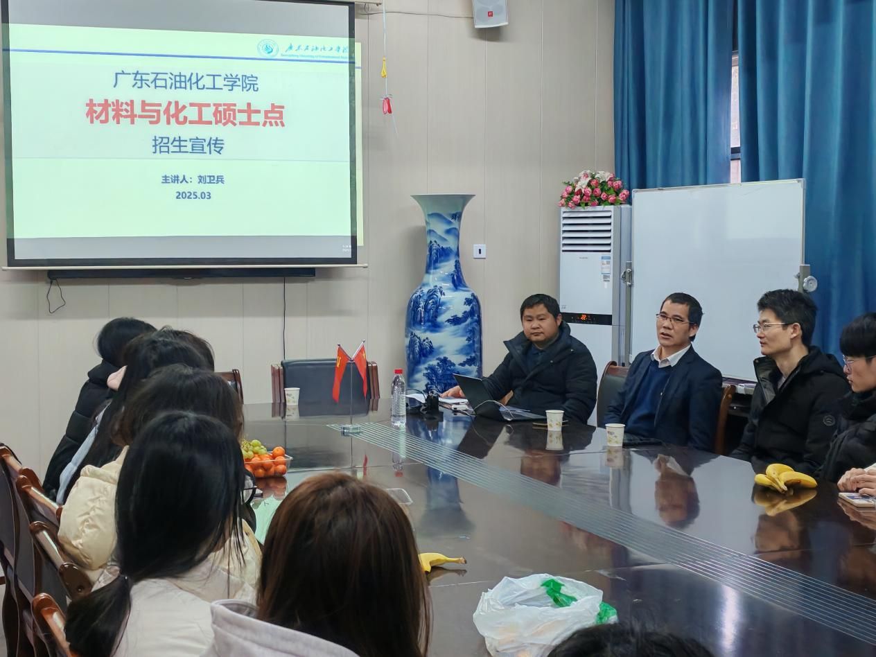 2025年3月5日,44118太阳成城集团材料与环境工程学院于多闻楼410举办广东石油化工学院2025届研究生招生宣讲会。广东石油化工学院教师代表团队主讲,材料与环境工程学院院长文瑾、副院长陈红军以及部分25届考研学子参加此次会议。