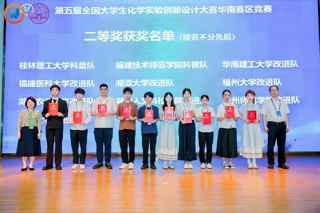 2025年7月25日至7月27日,第五届全国大学生化学实验创新设计大赛华南赛区选拔赛现场答辩在广西师范大学举行。本届竞赛,共有来自福建省、广东省、广西壮族自治区、海南省和湖南省等包括中山大学、厦门大学、国防科技大学等高校近600名本科生参加,组成189支参赛队伍。经过激烈角逐,太阳成官网吴腾宴副教授指导的由李佳颖、贺洋铃等组成的团队通过两轮答辩荣获华南赛区竞赛二等奖。