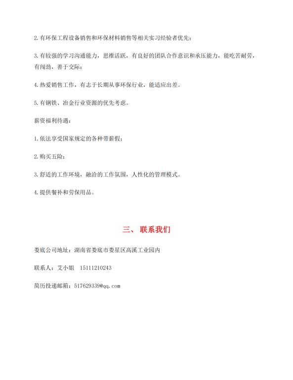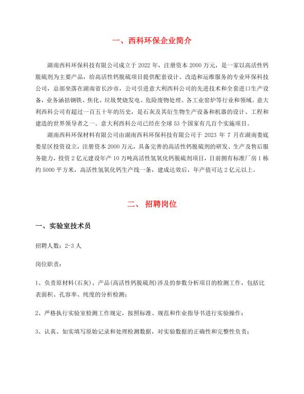 【就业信息】湖南西科环保科技有限公司招聘简章