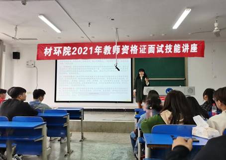为进一步提高学院学生的教师资格证面试应考能力,培养教育教学技能。2021年3月16日下午,材料与环境工程学院化学教研室于致远楼409举办了教师资格证面试技能讲座。讲座邀请娄星区教育局教研室副主任童小燕进行面试指导,化学教研室朱辉老师、彭伟才博士出席讲座,17级成功通过教资面试的同学以及18级、19级化学专业全体同学参加。