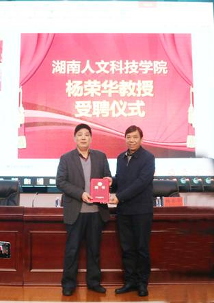 (图1 校党委书记郭军向杨荣华颁发客座教授聘书)