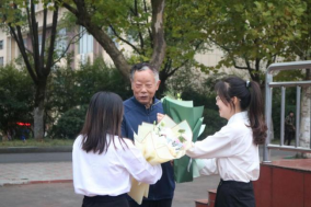 在国旗下,学生向退休教师代表敬献了鲜花,表达了师生的感恩知情。李志恒(学生代表)、颜智殊、文瑾、伍荻、谭峰亮依次讲话。