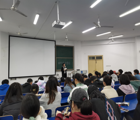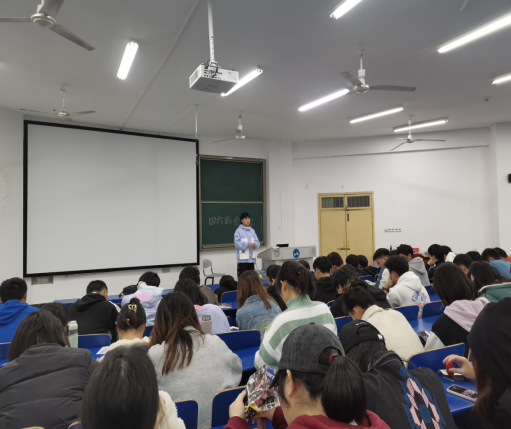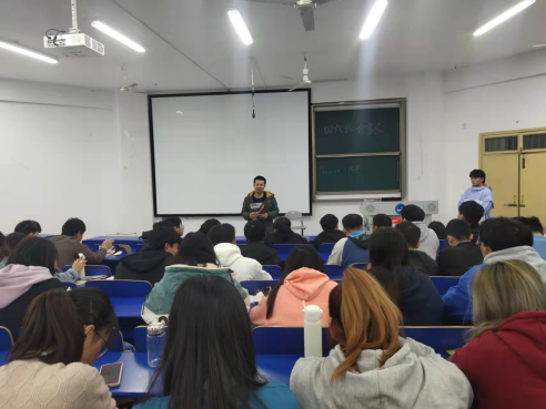 会议最后,班主任彭伟才作会议总结,他也向同学们分享了他的学习方法。在交流过程中,彭伟才老师又点名化学一班孙淑和化学二班官斌上台分享了自己备考四六级的一些经验。最后,彭老师以轻松幽默的语气鼓励大家,规律性学习刷题,以平常心态对待四六级考试,并祝愿大家顺利考级!