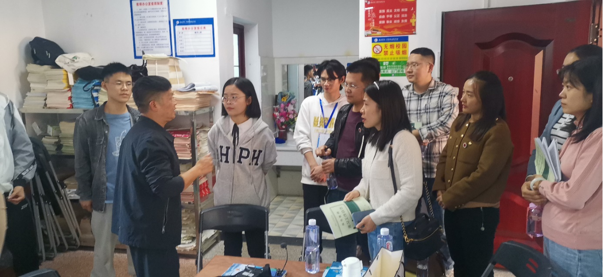 为全面了解教育实习进展情况,加强对教育实习的过程监控与管理,进一步密切与实习基地学校合作关系,2022年11月2日下午,材料与环境工程学院院长文瑾、副院长彭伟才、汲长艳,化学教研室主任李蔚和实习带队老师朱辉共赴娄底星星实验中学开展教育实习工作检查。