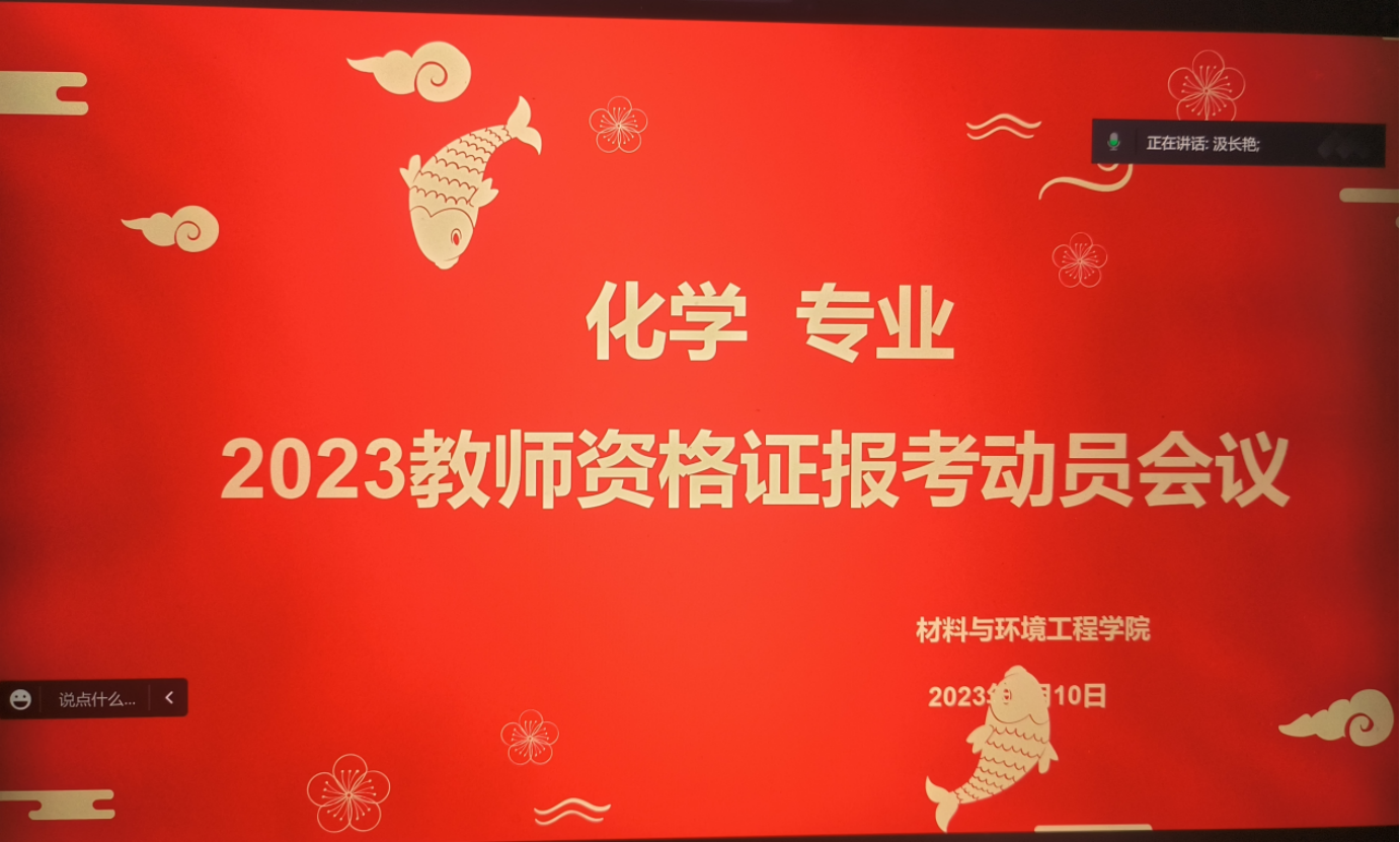 为提升人才培养质量,提高师范专业学生教师资格证通过率,2023年1月10日晚,材料与环境工程学院召开2023年学生教师资格证考试工作动员会。副院长汲长艳、彭伟才、党总支副书记陈佩君、化学教研室主任李蔚、化学专业各班主任及2019级和2020级师范专业学生参加会议。汲长艳主持会议。