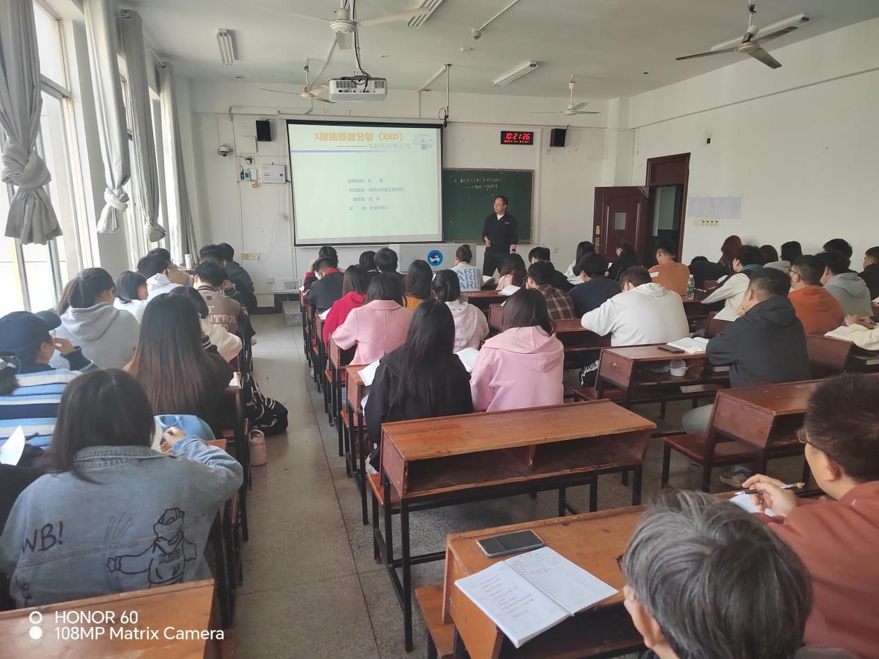 为进一步提高太阳成官网教师的教学水平,加强教师队伍建设,扎实推进教学质量,搭建教师之间交流与学习的平台。2024年4月8日星期一第3节课,材料与环境工程学院在致远楼615开展了主题为X射线衍射分析(XRD)的公开课,学院副院长汲长艳、化学教研室主任李蔚、化学教研室团各老师队出席了此次课程,主讲人为王军老师。