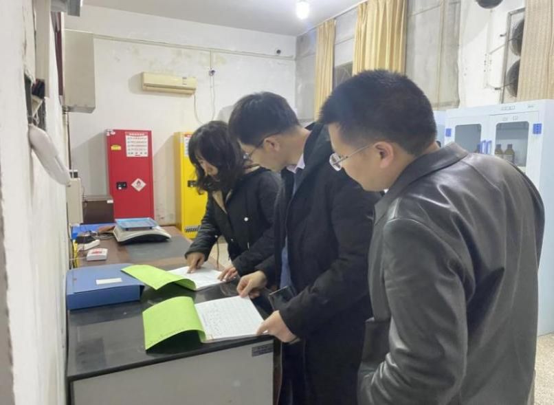 为做好实验室安全保障工作,扎实开展高校实验室安全专项行动。2023年12月12日,材料与环境工程院组织开展了教学楼实验室安全专项检查。本次检查由学院院长文瑾、党总支书记谭峰亮、副院长彭伟才、副院长汲长艳、实验室主任刘晓林、危化品管理员丁常泽等人员对院实验室进行全面检查,并重点查看了危化品采购入库、领用台账等相关记录。