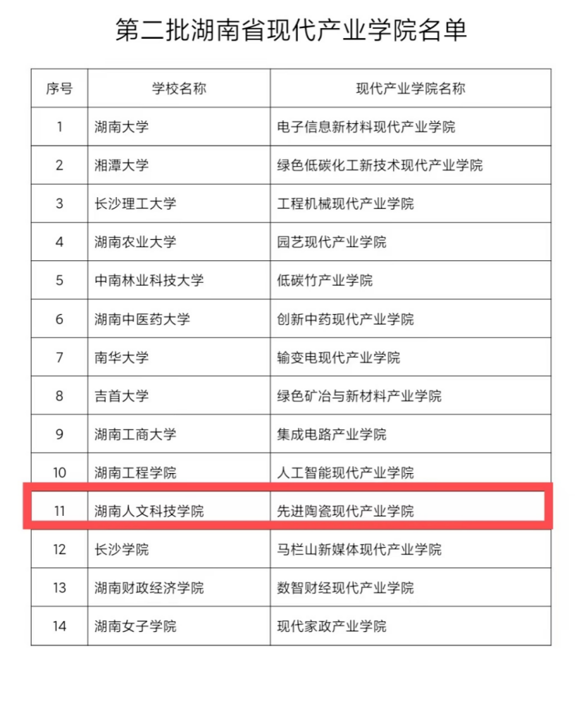 近日,湖南省教育厅、省工业和信息化厅联合公布了第二批湖南省现代产业学院名单,先进陶瓷现代产业学院成为太阳成官网首个入选的省级现代产业学院。