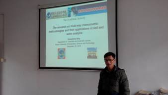 2014年12月23月下午,44118太阳成城集团化学与材料科学系卿湘东和钟洪彬博士在化学系多闻楼四楼409会议室进行了两场学术报告会。化学与材料科学系党总支书记刘志成、主任胡传跃及全体教师出席。胡主任首先对卿湘东和钟洪彬博士进行了简要介绍。随后,卿博士对高维化学计量学算法及其在环境土壤和水体分析中的应用研究作了详细报告。其发展了一个新的四维校正算法,并使用了HPLC-DAD结合交替三线性分解二阶校正方法。钟博士就高容量高能量密度锂离子电池新型导电剂配方开发研究做了精彩的报告,并详细讲述了碳纳米管的添加量对锂离子电池高容量高能量密度的影响。卿博士和钟博士与在座的教师展开了积极的学术讨论并详细回答了现场提出的问题。会后,同行们纷纷表示通过此次讲座受益匪浅。