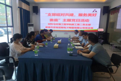 为增强基层党支部的战斗力与凝聚力,实现校企深度融合,落实产教融合,2022年6月8日下午,材料与环境工程学院教工二支部全体党员与娄底安地亚斯电子陶瓷有限公司党支部联合开展“支部结对共建,服务美好娄底”主题党日活动。
