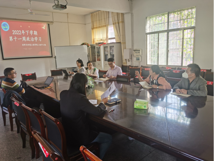 11月8日,材料与环境工程学院二级中心组在多闻楼410组织开展政治学习,会议由党总支书记谭峰亮主持。