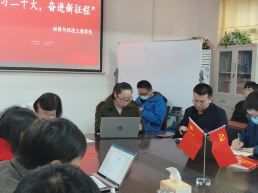 学理论之思,践初心之行。11月29日,材料与环境工程学院党总支开展“学习二十大,奋进新征程”主题党日活动,通过理论宣讲、报告研读、课程研讨等形式,认真学习贯彻党的二十大精神。