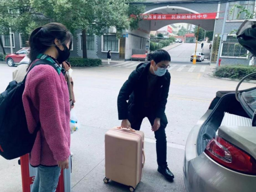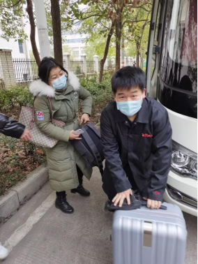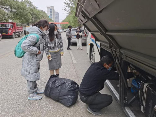为保障此次工作顺利进行,党总支书记谭峰亮提前对人员统计、乘车安排、疫情防控等工作作出周密部署,制定了安全有序的工作方案。上车前,学院领导、老师们不断叮嘱学生:“都检查检查自己的证件带齐了没有”“一定要保护好自己,做好防护!”“到家了第一时间给学院报个平安”……乘车点处,随处可见领导、老师耐心引导学生们前往巴士停靠点,帮助学生搬送行李。
