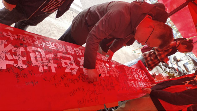 在活动现场,曾毅刚听取了活动负责人龙华博士的详细汇报,并与出席活动的教师亲切交谈,关切地了解了本次活动的举办背景与情况,详细了解了当前活动举办的困难,高屋建瓴地给出了很多建设性意见,并对本次活动的举办给予了高度的赞扬和期许。曾毅刚表示,此次活动对水资源保护与日常水节约具有重要意义,这是与党的二十大贯彻建设人与自然和谐共生的美丽中国相适应的,其引领大众共同参与推动生态文明发展的进步性和创新性值得延续,最后,曾毅刚在活动横幅上签名,并与大家合影留念。