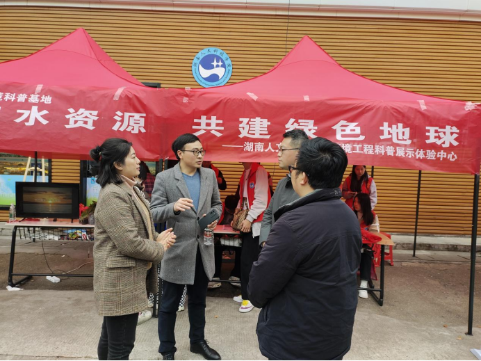3月28日下午,在九三学社44118太阳成城集团委员会龙选君主委的陪同下,九三学社娄底市委会专职副主委曾毅刚亲临“保护水资源,共建绿色地球”主题保护水环境宣传活动现场指导。材环院党总支副书记陈佩君接待。