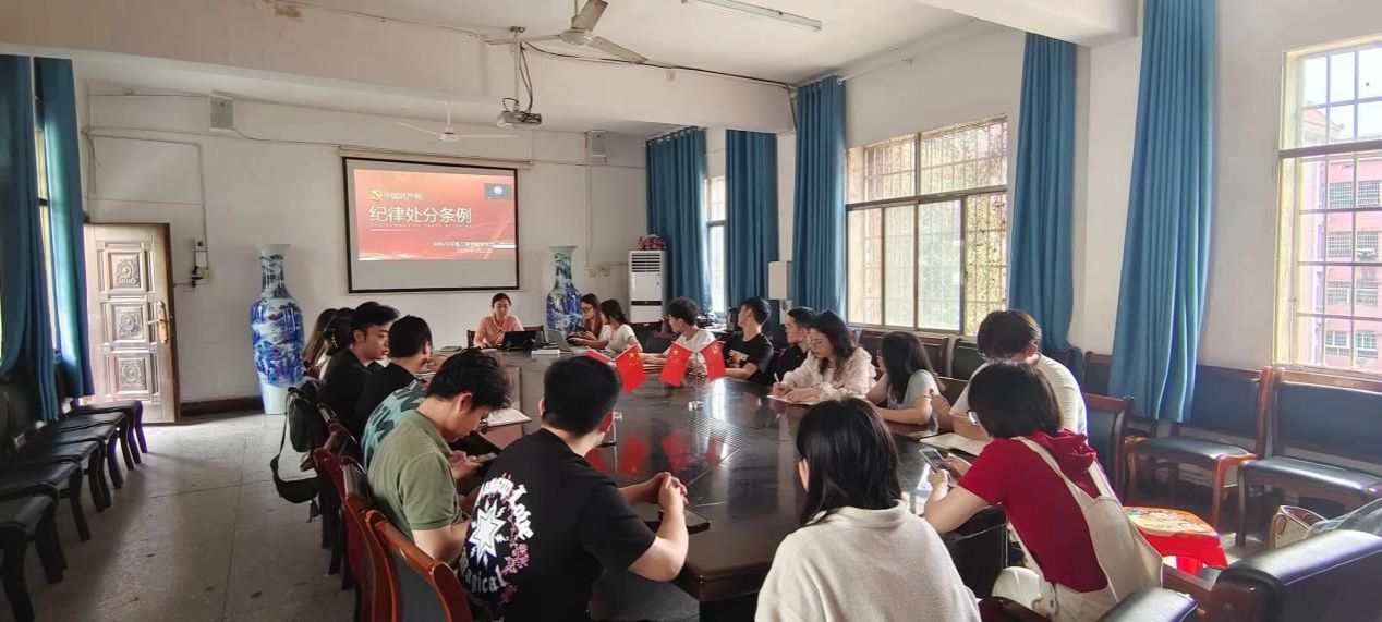 为深入学习好、宣传好、贯彻好新修订的《中国共产党纪律处分条例》,进一步加强纪律作风建设,增强党员纪律规矩意识,2024年4月22日,材料与环境工程学院学生第一党支部召开《中国共产党纪律处分条例》政治学习交流会。党支部书记朱舒腊以及全体学生党员参加此次会议。