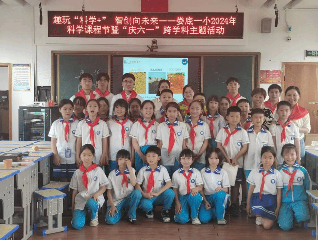 2024年5月15日,张晓峰博士及志愿者们以盘古开天辟地的神话故事切入,向同学么介绍了什么是土、土的来源、土壤的种类,通过灼烧-冷却和腐蚀实验演示了矿石的风化现象,让同学们亲学会判断物理风化和化学风化原理。