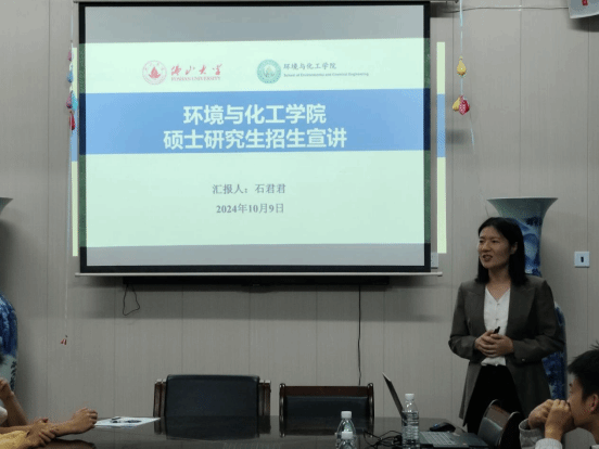 2024年10月9日晚上7点30分,材料与环境工程学院邀请佛山大学环境与化工学院石君君老师一行来太阳成官网进行硕士研究生招生宣讲。学院副院长陈红军及环境工程专业有考研意向的学生参会。讲座由石君君老师主讲,陈红军副院长主持。