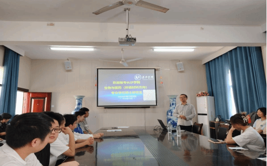 会上,陈晗教授首先从学院的历史沿革、师资队伍以及师资教研成果等方面对学院的基本情况进行了详细介绍,其中重点阐释了研究生培养事宜。据悉,长沙学院自 2017 年便开始着手筹备硕士学位授权单位的申请,历经不懈努力,于 2024 年 7 月底成功获批成为“硕士学位授权单位”。长沙学院的生物与医药专业致力于培养具备扎实生物工程和药学基本知识的高素质应用型人才。学校在学生学制内实行完善的奖助学金制度,设立了国家奖学金、国家助学金、学业奖学金等多种奖项。最后,陈晗教授热情鼓励广大学生报考本学院研究生,来亲身体验园林式的学校生活。