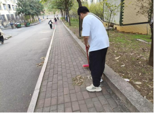 从宿舍大门到宿舍前坪,再到过道尽头,无一不充斥着忙碌的身影。同学们拿起打扫工具,干劲十足,如同一个个战士般干净利落,不留下一片落叶,一寸杂草。当阳光洒在同学们的脸上,映射出来的不是疲倦,而是生生不息的斗志,即使汗珠从他们的脸上滑落,也并没有影响他们前进的速度。
