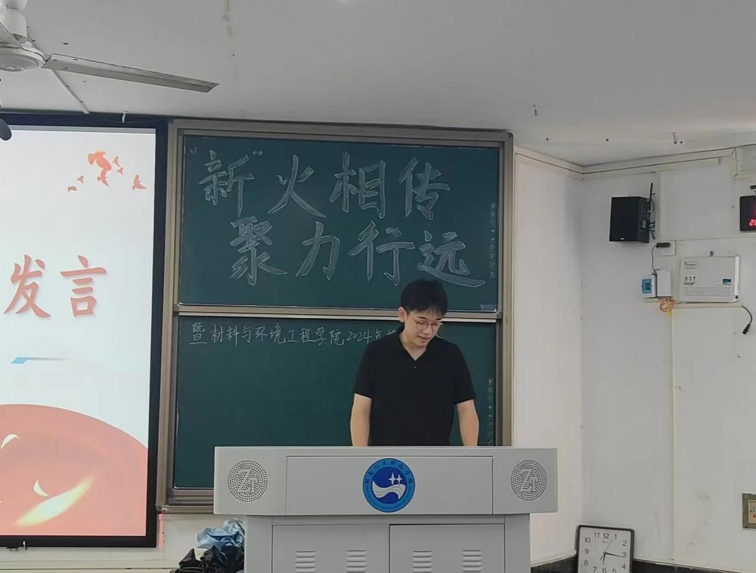 2024年9月20日中午,材料与环境工程学院“‘新’火相传、聚力行远”换届大会在致远楼320举行,党总支副书记王新辉、全体辅导员以及团学会全体成员参会。
