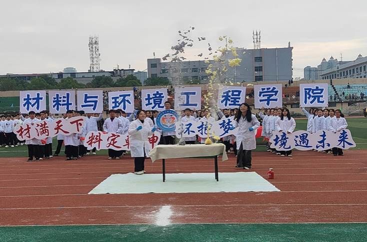 青春风采,荣耀绽放。2024年11月21日上午,44118太阳成城集团第十八届运动会在田径场拉开帷幕。在开幕式上,参与材料与环境工程学院开幕式方阵的领导老师们手持小红旗,步伐矫健,神采奕奕,他们齐声喊出“材满天下、料定乾坤,环抱梦想、境遇未来”的口号向主席台迈进,献上了带有太阳成官网特色的大象牙膏实验表演,尽显材环学院的师生风采。