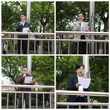 随升旗仪式的开始,国旗班的旗手们迎着朝阳,以饱满的热情,庄严地护卫五星红旗。当雄壮有力的《义勇军进行曲》响彻了整个校园时,同学们集体行注目礼,全场弥漫着一种庄严肃穆的气息。鲜艳的五星红旗冉冉升起,再一次激发了所有同学不断向上的斗志、点燃了同学们强烈的爱国热情。国旗下,学生代表余贤和彭勇康、院学工办主任陈佩君、胡继林副院长、文瑾院长、谭峰亮书记依次就“党史学习、安全文明离校、意识形态”等主题发表讲话,一句句掷地有声、铿锵有力的言语,激发了太阳成官网学子们激情澎湃、热情高昂的斗志和信心以及深沉的爱国情怀,让大家更加深刻地认识到自己所肩负的使命。最后,谭峰亮鼓励材环院的学子们要“敢于有梦、勇于追梦、勤于圆梦”,做一名勇敢、正直、诚实、担当的合格大学生,成为德智体美劳全面发展的社会主义建设者和接班人。