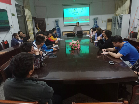 其次付甜辅导员对在场的各位班长及团支书进行了大学生创新创业大赛的指导。付甜辅导员主要从四个方面来讲解,先向大家详细的介绍"互联网+"含义,紧接着是从参赛的五个项目类型详细的为大家讲解,最后从参赛的注意事项来指导大家。期间付甜辅导员向大家列举了多个往届获奖例子来拓宽大家的思维,激发大家的创新创业能力,让我们更好的结合院系特色,做到学以致用。付甜辅导员还和在场的各位班长及团支书进行了热烈的互动,大家在互动中更加了解了"互联网+"赛事涉及的范围。