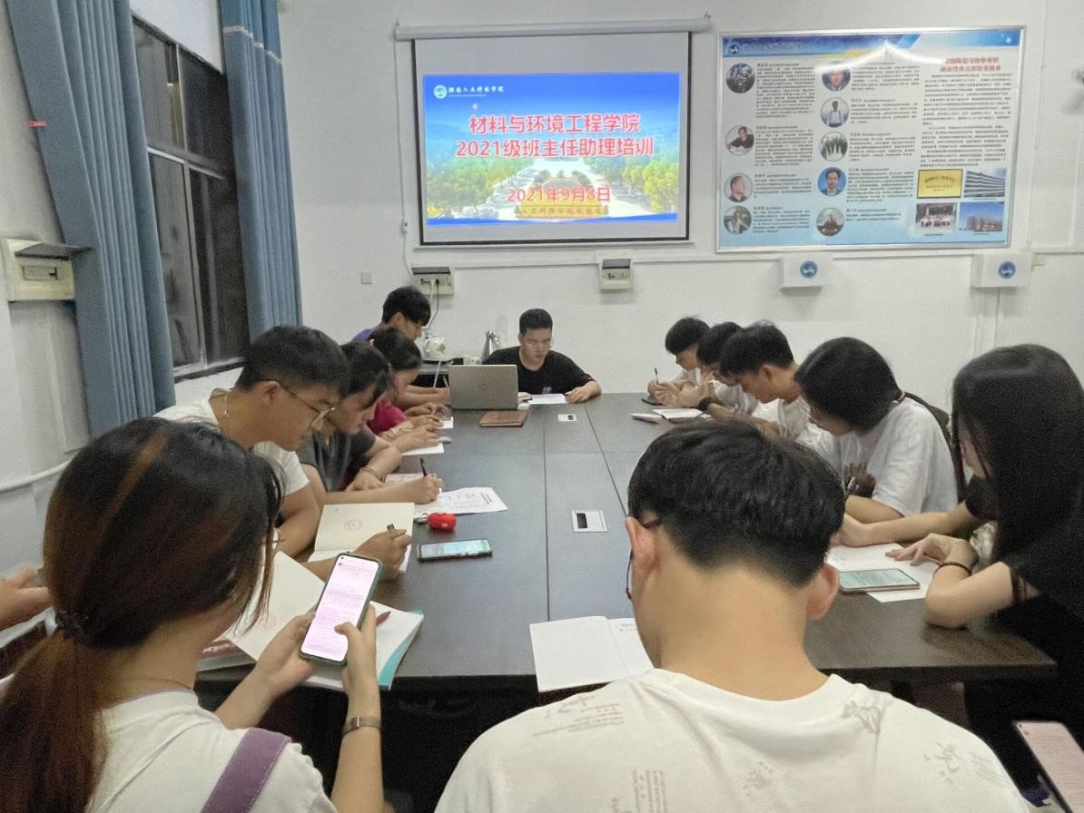 2021年9月8日、9日,44118太阳成城集团材料与环境工程学院开展了为期两天班主任助理(代班)培训会议,本次培训由辅导员伍荻支持,2021级新生代班参加,院党总支副书记陈佩君莅临指导。