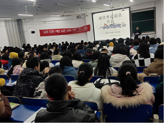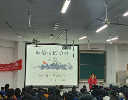 为加强学院学风建设,严肃考风考纪,且进一步做好学生安全教育部署工作12月17日,材料与环境工程学院在致远楼119教室举行“诚信考试动员大会。学院副院长胡继林、副书记陈佩君、辅导员伍荻出席本次大会,21级全体学生、20级、19级各班学生代表参加了本次会议。