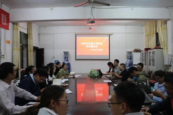 10月4日晚,材料与环境工程学院于多闻楼410会议室召开学风建设推进会暨班主任工作会议。学院党总支书记谭峰亮;副书记陈佩君;副院长彭伟才、汲长艳;学工办主任朱舒腊;辅导员李璐玢、何欢及全体班主任参会。会议由汲长艳主持。