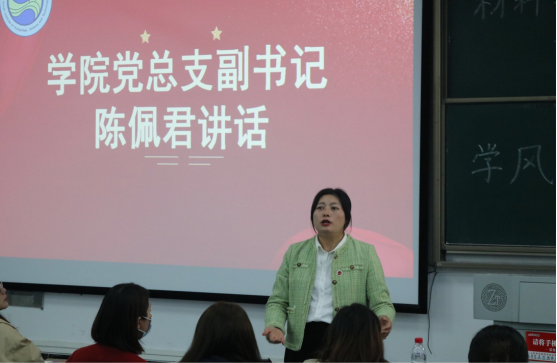 学院党总副书记陈佩君老师呼吁同学们加强理论学习,提升业务水平,牢记并遵守学校和学院的各项管理规章制度。陈佩君副书记强调班干部们是班里的“大家长”,应打开格局,提升自我修养,做好班级里的思想工作,有担当有作为有纪律,严于律已,起好带头作用,建设良好的学风;在与学校交接工作方面,要勤思考,善总结。