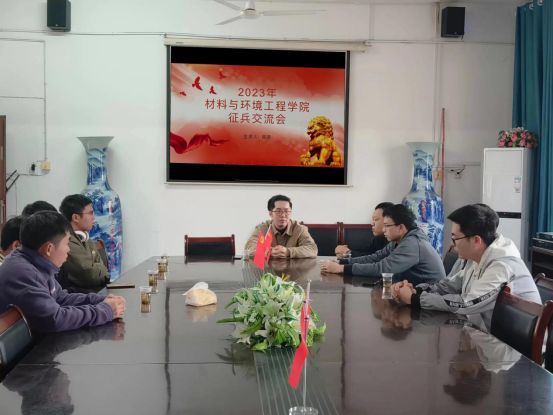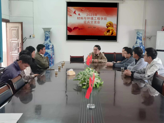 3月25日下午三点三十,材环院在多闻楼会议室410召开2019级学生征兵工作交流会,征兵专干陈昱、2019级学生代表参加会议。本次会议针对性的从大四学生中挑选了十余名曾经在校大队等相关部门锻炼过的干事前来,专干陈昱就国家的征兵政策、市场的就业环境结合每位同学的实际情况进行了介绍和分析,鼓励同学们趁年华大好,参军入伍报效祖国。随后,同学们也发出了热切的回应,表达了自己的想法与规划,同时也认真地提出了问题,会场气氛十分热烈。