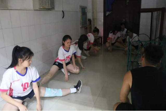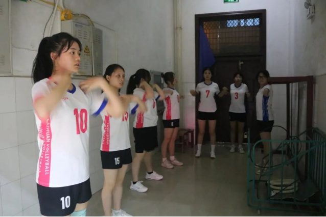 赛前,队员们在队长带领下进行充分的热身,以高昂的斗志面对比赛。