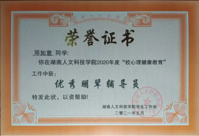 7.2021年获优秀朋辈辅导员的称号