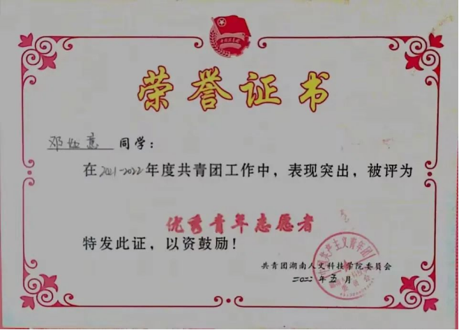 10.2022年获优秀青年志愿者的称号