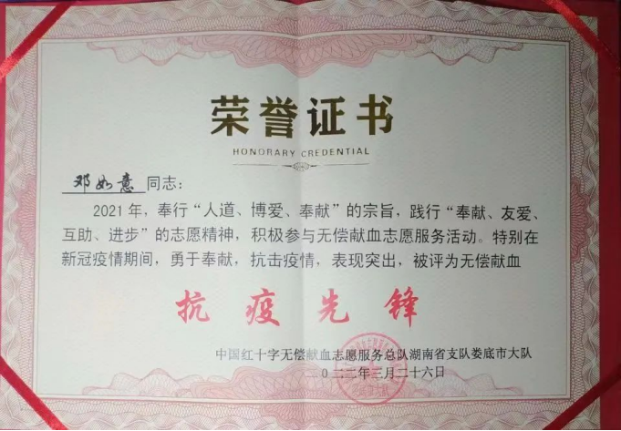 9.2021年参与无偿献血志愿服务活动被评为无偿献血抗疫先锋