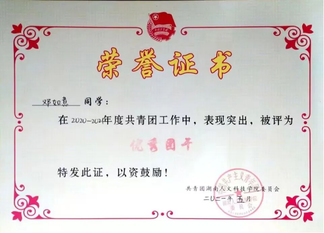 6.2021年获优秀团干的称号