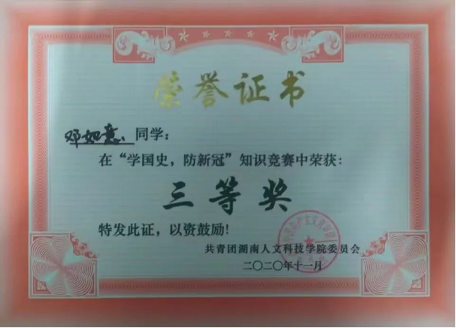 5.2020年获“学国史,防新冠”知识竞赛三等奖
