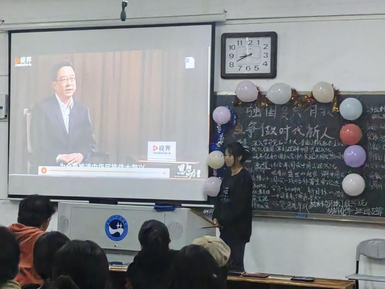 团课中,各团支书紧密联系党的二十大这一主题用心策划,组织同学们认真观看相关视频,学习习近平新时代中国特色社会主义思想,台下的同学们也积极配合各班团支书,主动思考其中的意义,以此来增强团员和青少年的爱国情怀和民族自豪感,厚植报效祖国、献身人民的情怀。各班团支书在此次团课中各显神通,通过各种活动形式使同学们参与进来,得到良好反馈。