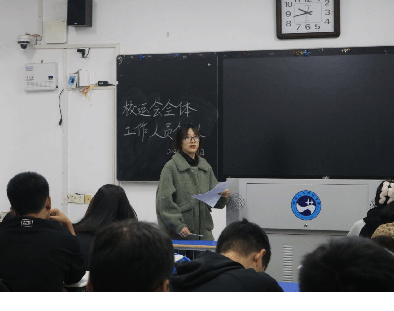 会上,李雷震老师从看台管理、运动员对接、物资搬运等方面进行工作部署,对人员安排合理规划,确保工作的有序落实。同时,他提出“做事要积极,对接要仔细,管理要弹性”的工作理念和要求,为校运会工作开展提供保障,随后,吴芯愉进行补充,她指出工作开展过程中,出现情况应及时上报说明;同时,针对好人好事事件,应给予重点关注,确保事件高效、真实的报道。