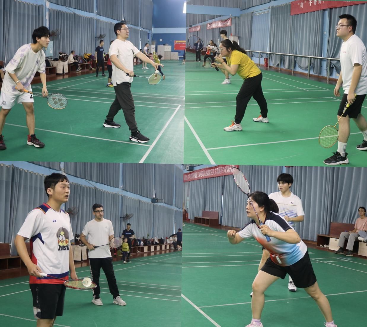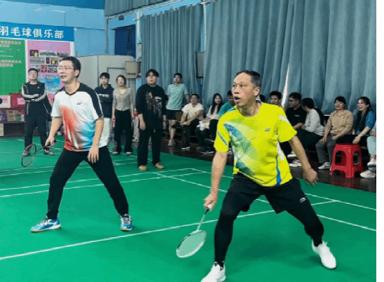 决赛中,老师们全力以赴、沉着应对,学生们都打起十二分的精神,各个使出浑身解数,在每一回合的博弈中高度专注、活力四射。一声声清脆响亮的击球声,迸发出十足的朝气与活力,每个人脸上都能看到不言弃、敢拼搏的精神风貌,在热情洋溢的氛围中,一场紧张又刺激的师生羽毛球比赛圆满结束。