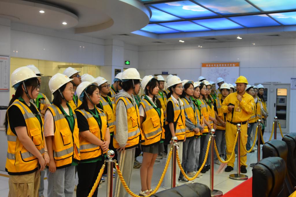 在工作人员带领下,同学们去往火力发电厂集控室、锅炉房、汽机房等生产区域,实地参观了汽轮发电机等发电设备及除灰脱硫、布袋除尘等配套环保设施,现场了解公司清洁发电、节能环保等工作开展情况。