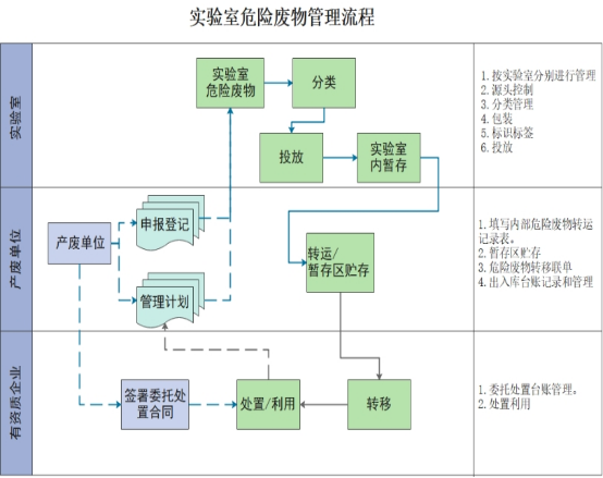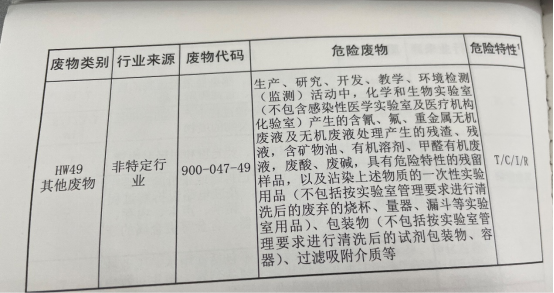 7、由指定人员负责存放管理,并建立台账,明确废弃物名称、来源、进出量,实验室危废产生责任人、实验室资产员、院分管领导三方签名等。