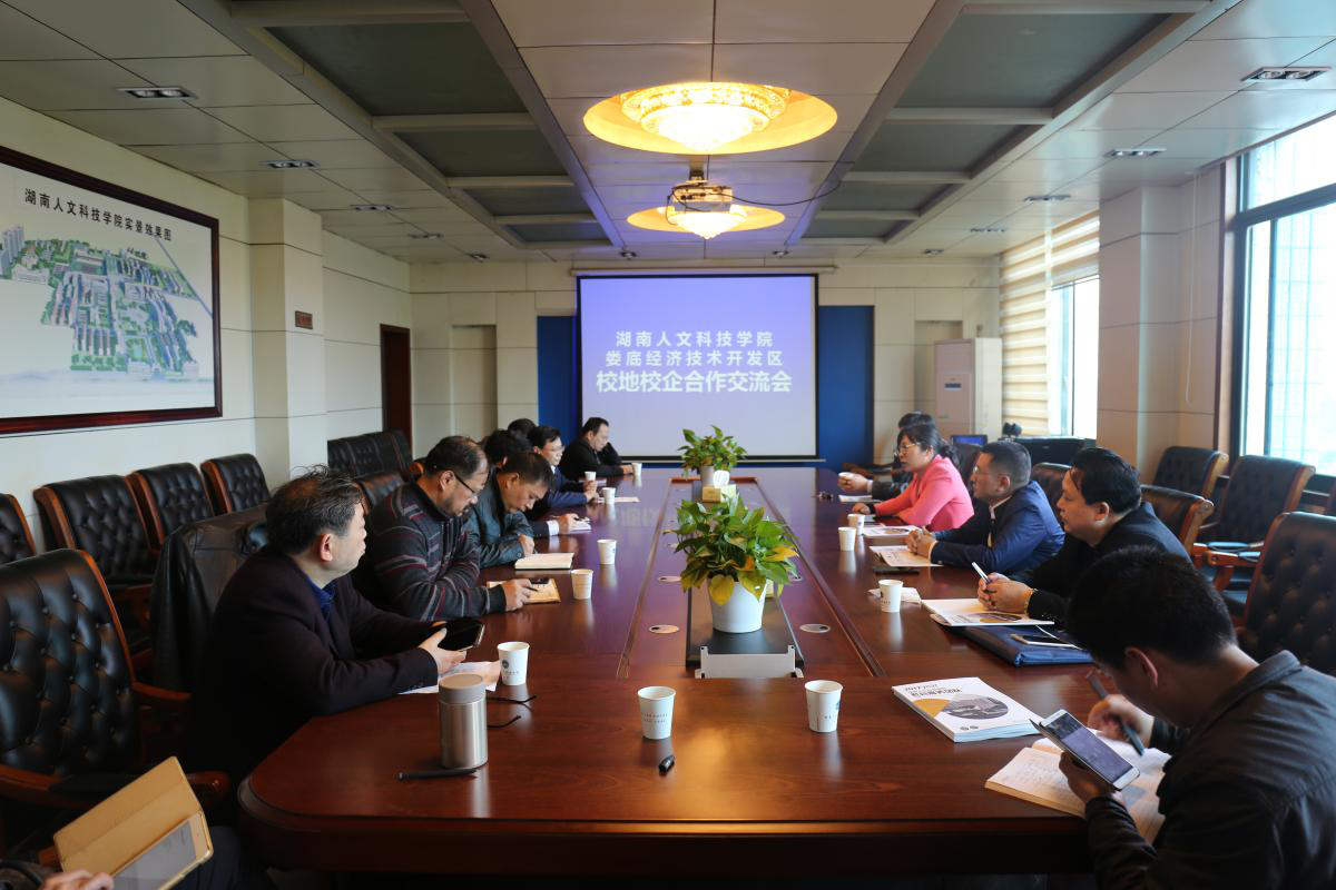 3月14日,娄底市经济开发区主任康艳华率副主任王青峰、招商局局长吴德胜、人事局局长周新光一行来太阳成官网合作洽谈。副校长周发明、陈志国出席会议,校地校企合作处、科研处、能机院、材环院、商学院、创新创业学院等部门负责人参与合作洽谈。陈志国主持会议。
