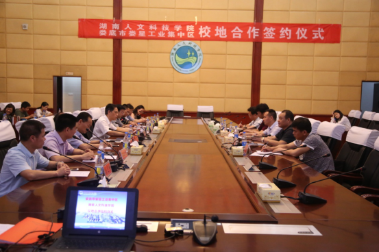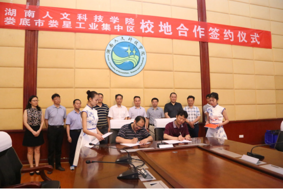 校地校企合作处处长黎建辉、娄星工业集中区付朝晖分别代表校地双方在协议上签字。