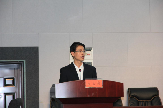 副校长周发明代表学校讲话,他首先对校企双方为推进合作前期所做的卓有成效的工作给予充分肯定,对外国语学院党政领导积极推进转型发展、深化产教融合、着力探索人才培养新路给予高度评价。