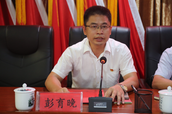 ▲油溪桥村党支部书记彭育晚介绍油溪桥村情况