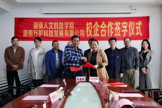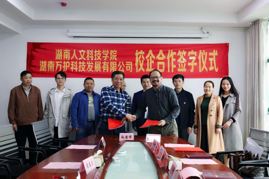 仪式由校地校企合作处处长黎建辉主持,副校长周发明、湖南万护科技发展有限公司创始人肖志坚、法人代表赵建祥出席签约仪式。